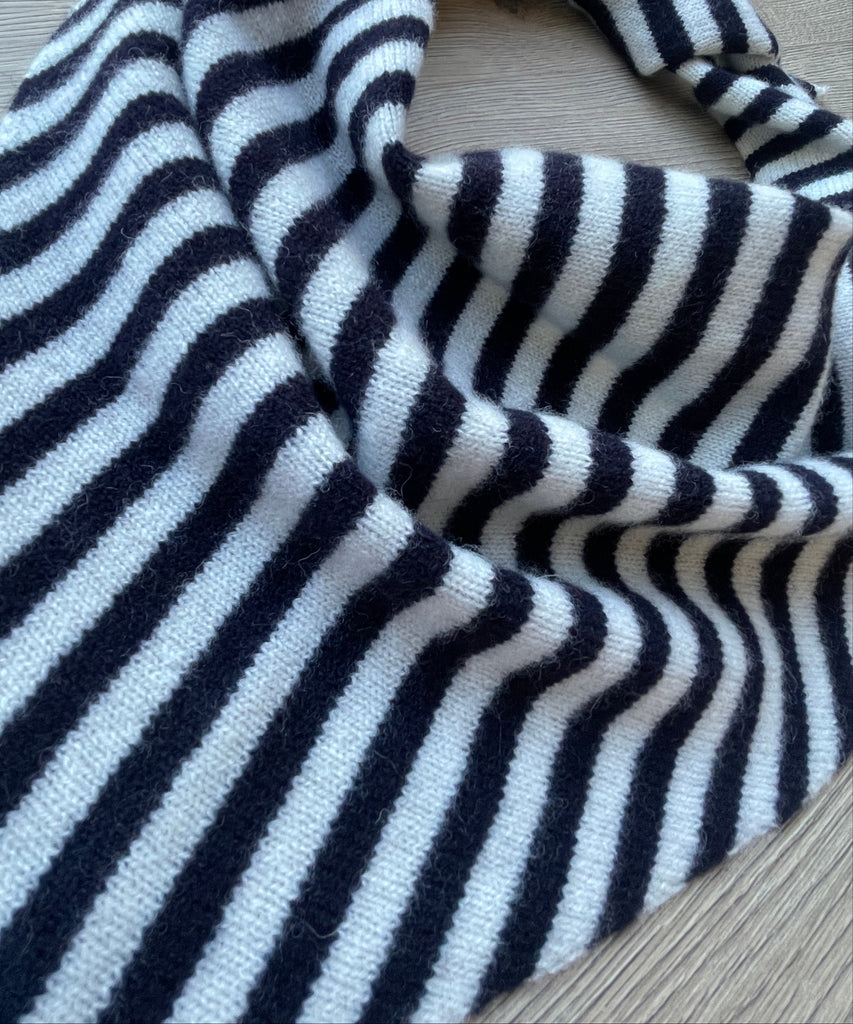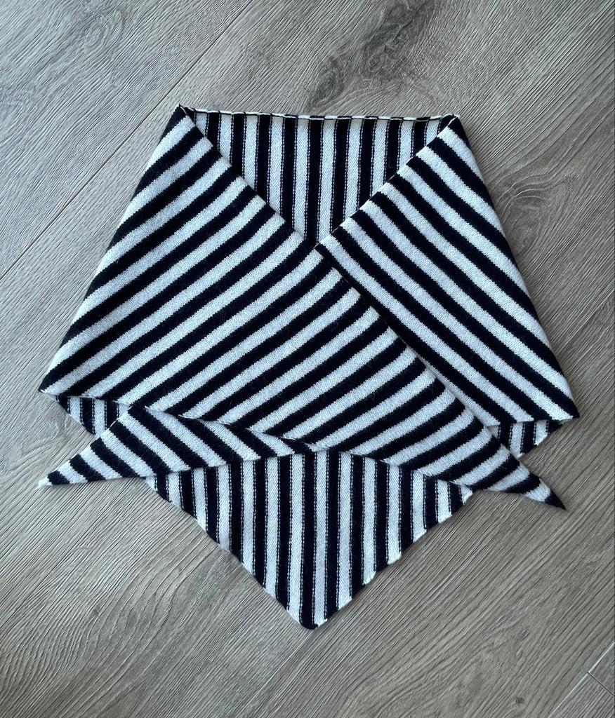 LARGE TRIANGLE SCARF NAVY & OFF-WHITE STRIPE