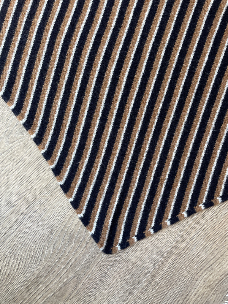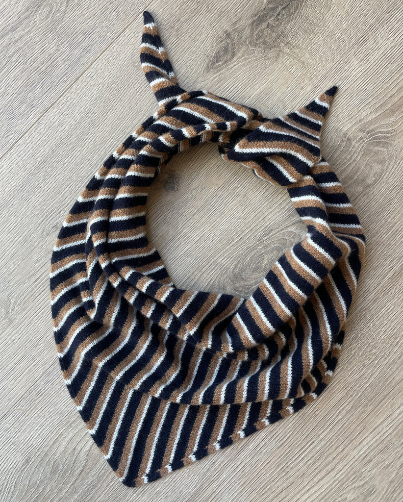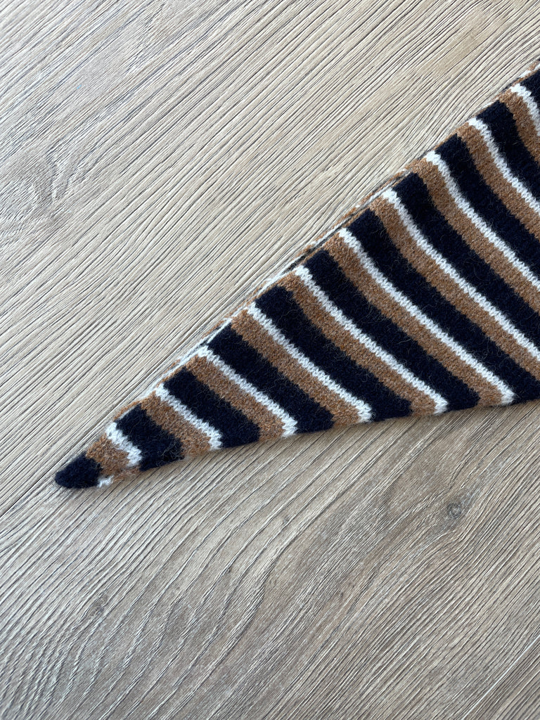 LARGE TRIANGLE SCARF BROWN NAVY & ECRU MULTI-STRIPE