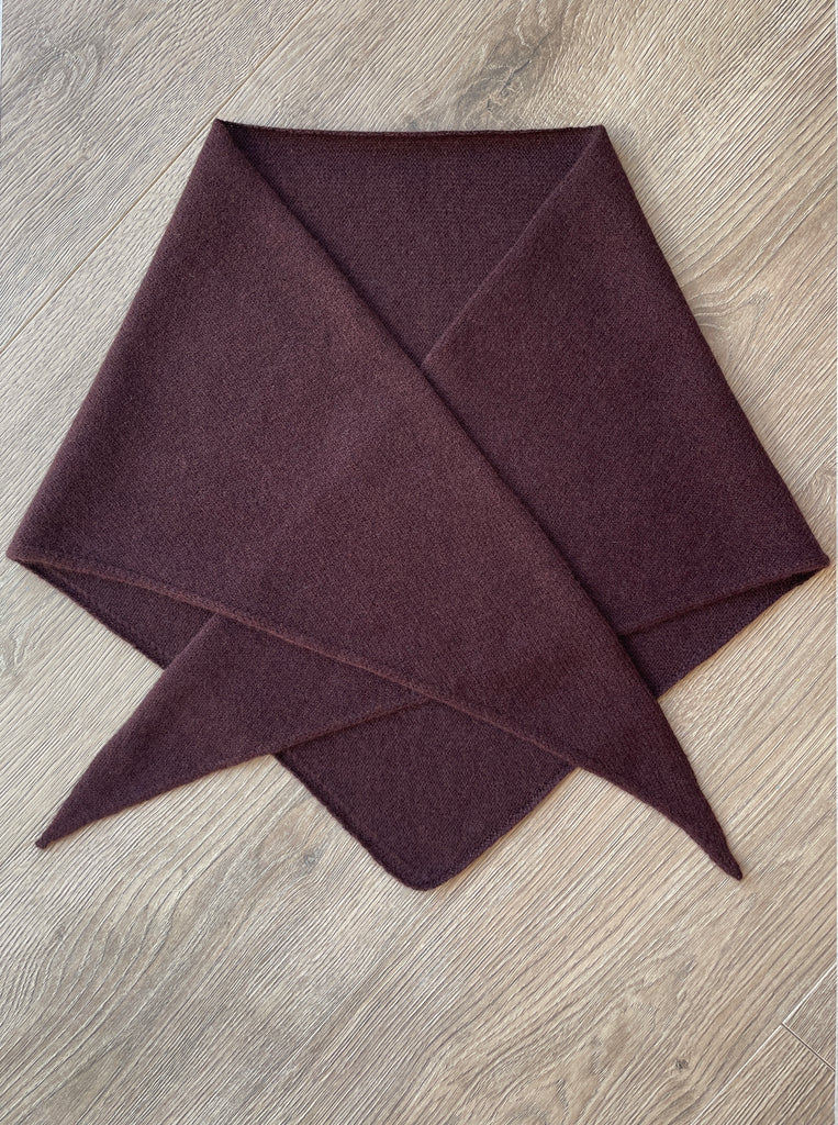 Knitted from super soft 100% merino lambswool spun in Yorkshire, this sumptuous chocolate brown triangle neckerchief is the perfect colour for between the seasons.