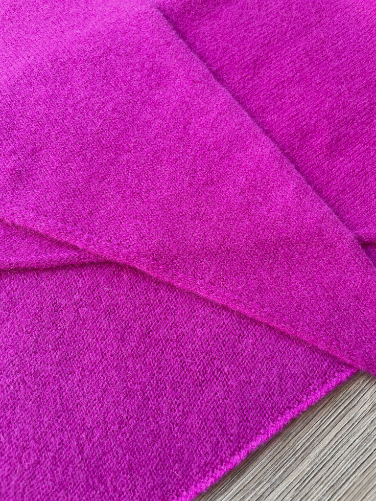 Expertly crafted in a classic triangular shape and hot magenta hue, it measures approximately 120 cm across and 42 cm deep (taken from middle of longest side to point), offering the perfect size for multiple styling options. Naturally breathable and moisture-wicking, it provides cosy insulation without overheating - ideal for year-round wear; from cool summer evenings to crisp autumn walks and chilly winter mornings.